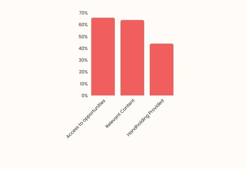 50% Women entrepreneurs with mentorship support are very happy with the support they receive. Research shows different reasons why women entrepreneurs find these supports helpful