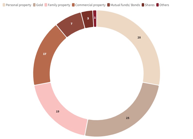 Personal property and gold are the top choices as collateral to secure a loan. This is followed by family property, commercial property, mutual funds/bonds, shares and others. Only 3% of women entrepreneurs use mutual fund shares as collateral. This depicts the risk-averse approach.