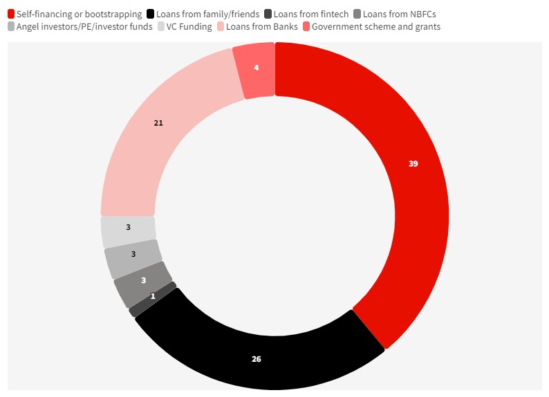 Self-financing is the most popular choice among women looking to fund their business, followed by loans from family and friends and bank loans. Minute percentage of women entrepreneurs look at NBFC, Angel Investor, PE etc. Whereas fintech companies are the least popular funding choice.